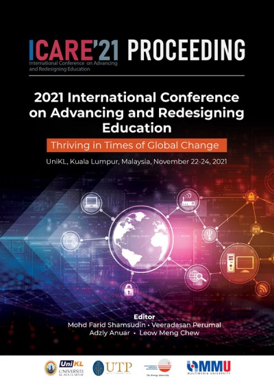 The 2021 International Conference on Advancing and Redesigning Education (ICARE’21) is an international conference organised by Malaysian Government Linked Universities (GLU), which consist of Multimedia University (MMU), Universiti Kuala Lumpur (UniKL), Universiti Tenaga Nasional (UNITEN), and Universiti Teknologi PETRONAS (UTP). This conference is virtually hosted by UniKL from 22nd to 24th November 2021. ICARE’21 has four unique tracks that represent niche areas of respective GLUs, namely: skill-based education, soft skills in T&L, industry-driven curriculum, and emerging technologies in the classroom. The variety of tracks and subthemes offered in ICARE’21 allows educators, researchers, scholars and policymakers to get together and showcase or debate their myriad findings in their respective fields.